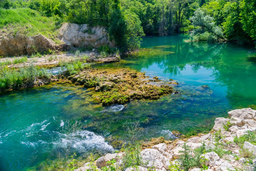 Kravice is a 25-meter-high waterfall, forming a magnificent semicircular cascade that creates a breathtaking amphitheater of water. Its impressive width, stretching around 120 meters, offers a stunning sight and is the perfect place to relax and enjoy nature’s beauty. In winter, the waterfall becomes even more imposing due to the increased water volume, while in summer, it turns into a popular spot for swimming and picnics.