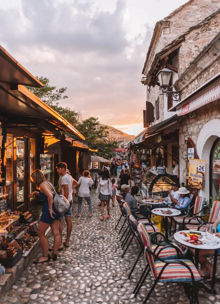 Wandering through the cobblestone streets of Mostar’s Old Bazaar is like stepping back in time to a bygone era of bustling markets and vibrant trade. Known locally as Kujundžiluk, this historic quarter is home to a colorful array of shops, stalls, and cafes selling everything from traditional handicrafts and souvenirs to local delicacies and artisanal goods. Visitors can browse the stalls, haggle with vendors, and sample local treats like cevapi (grilled meat skewers) and baklava (sweet pastry) as they soak in the sights, sounds, and scents of this bustling marketplace.